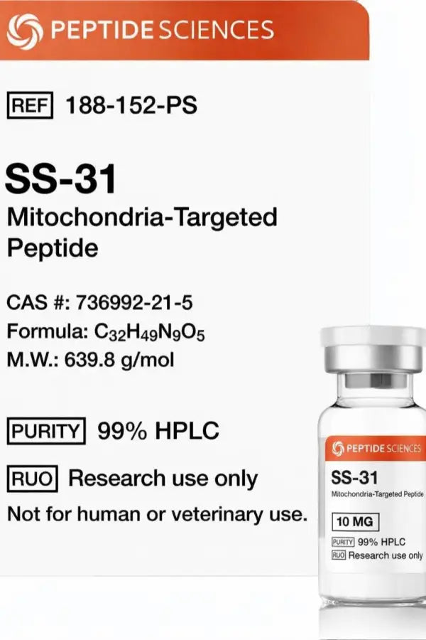 Produzido pela Peptide Sciences, o SS-31 apresenta 99% de pureza (HPLC) e é amplamente utilizado em pesquisa científica, estudos de metabolismo energético, longevidade celular, anti-aging, performance mitocondrial e recuperação muscular.