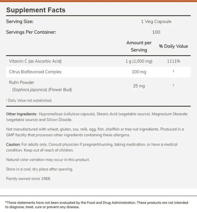 🍊 Vitamin C-1000 100mg Bioflavonoids (100 VCapsules) – Now Foods