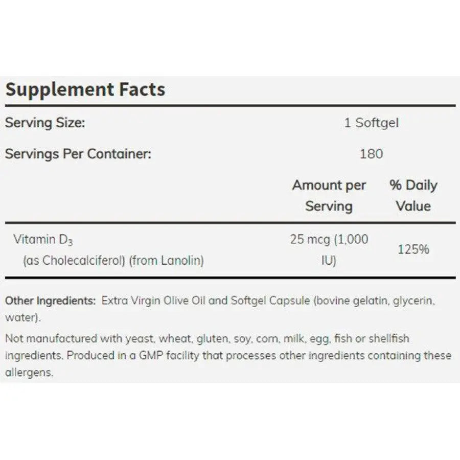 Vitamina D-3 1000IU Now Foods Composição