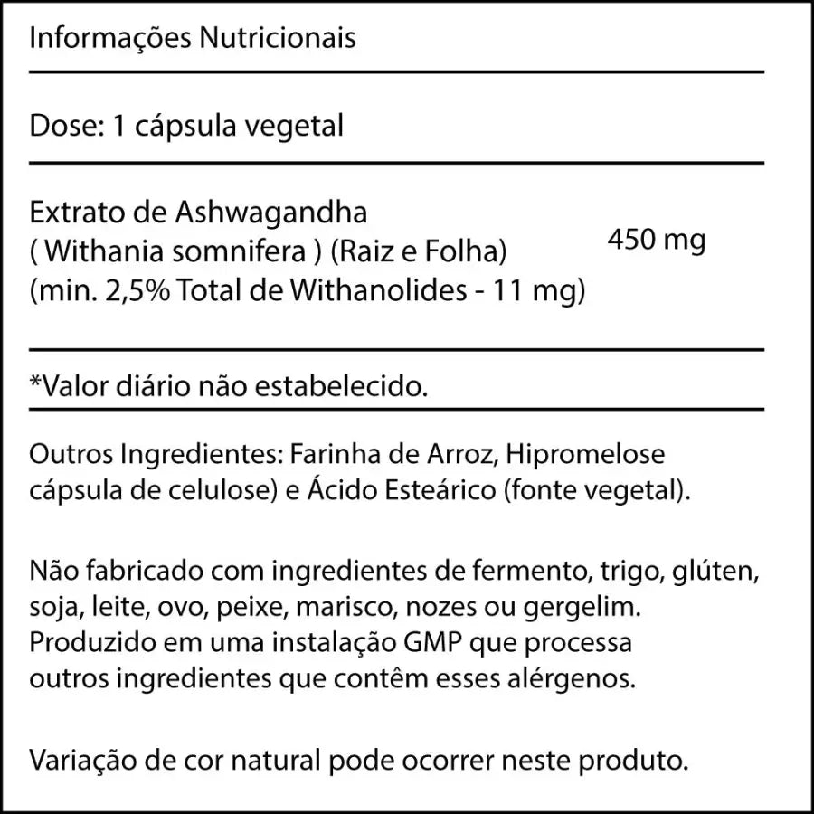 - Ashwagandha (Withania somnifera) (Raiz) (Extrato Padronizado) - 450 mg