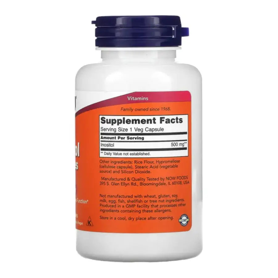 O Inositol 500 mg (100 Veg Capsules) – Now Foods é um suplemento natural que apoia o equilíbrio hormonal, a saúde mental e o metabolismo celular. Ideal para quem busca bem-estar emocional, energia e equilíbrio metabólico, com a qualidade reconhecida da Now Foods.