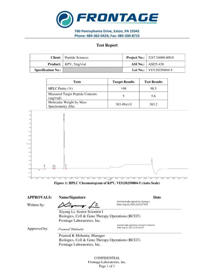 Em estudos laboratoriais, o KPV vem sendo investigado por sua interação com vias de sinalização associadas a processos inflamatórios e resposta imune celular, sempre em ambientes controlados e sem indicação para consumo humano.