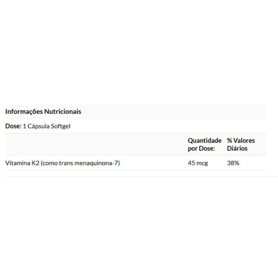 - Vitamina K2 (como menaquinona-7) - 45mcg (equivalente a 56% do valor diário recomendado)